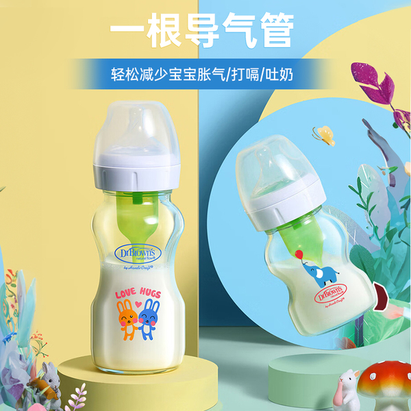 布朗博士玻璃奶瓶,新生儿防胀气防呛奶宽口径0-9个月+宝宝喂奶必备。一根导气管,轻松减少宝宝胀气/打嗝/吐奶!促进连续喝奶减少喂奶时间,还原妈妈**形态大小给予宝宝母乳般安全感!
