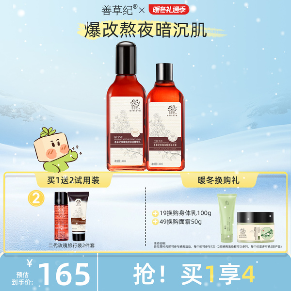 【拍二代玫瑰2件套(水+乳)。该品有11元的首单礼金,还可以抵扣淘金币16.92元,到手约折126.9元,并且可以冲购物金,充350送20,合94折,到手约119.28元】专为熟龄肌设计,提亮肤色+补水保湿+紧致抗老三效合一。