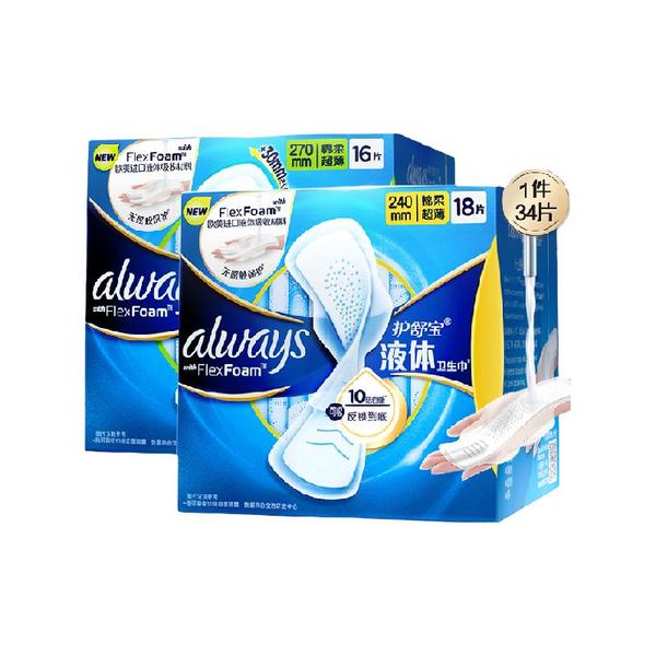 护舒宝液体卫生巾组合装34片