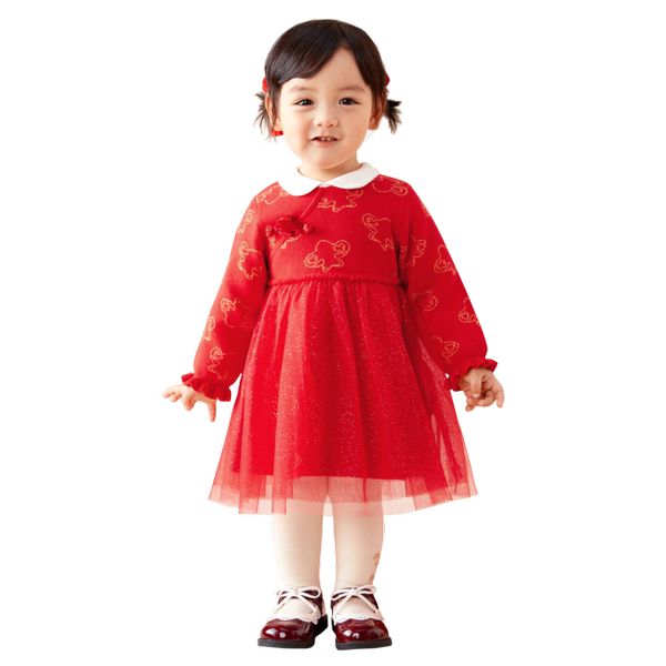 巴拉巴拉童装女童连衣裙2026新秋冬装网纱儿童裙子红色拜年服洋气
