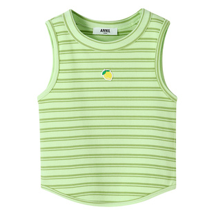安奈儿童装女童圆领无袖背心2025夏新款甜美撞色条纹弹力清新潮流