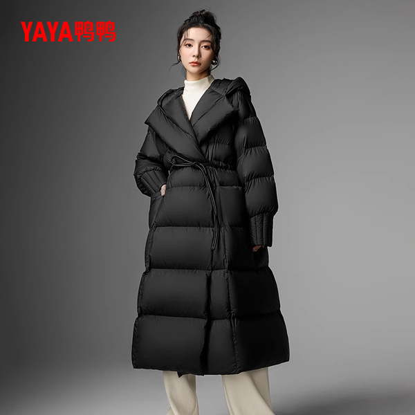 鸭鸭长款羽绒服连帽时尚外套