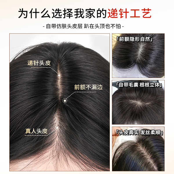 【金丝波点】假发片女头顶真发遮白发增发量高颅顶自然前额补发片
