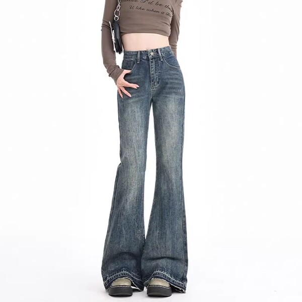 拉夏.显瘦半身裙高腰牛仔裤阔腿裤