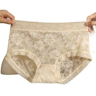 法式蕾丝内裤女无痕桑蚕丝抗菌大码中腰亲肤透气性感女士三角裤头