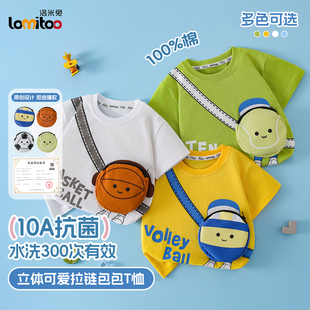 洛米兔纯棉短袖T恤带立体包包