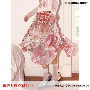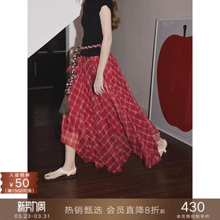 popchrio不规则格纹雪纺半身裙