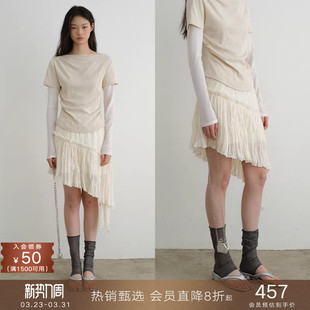 popchrio不规则百褶雪纺半身裙